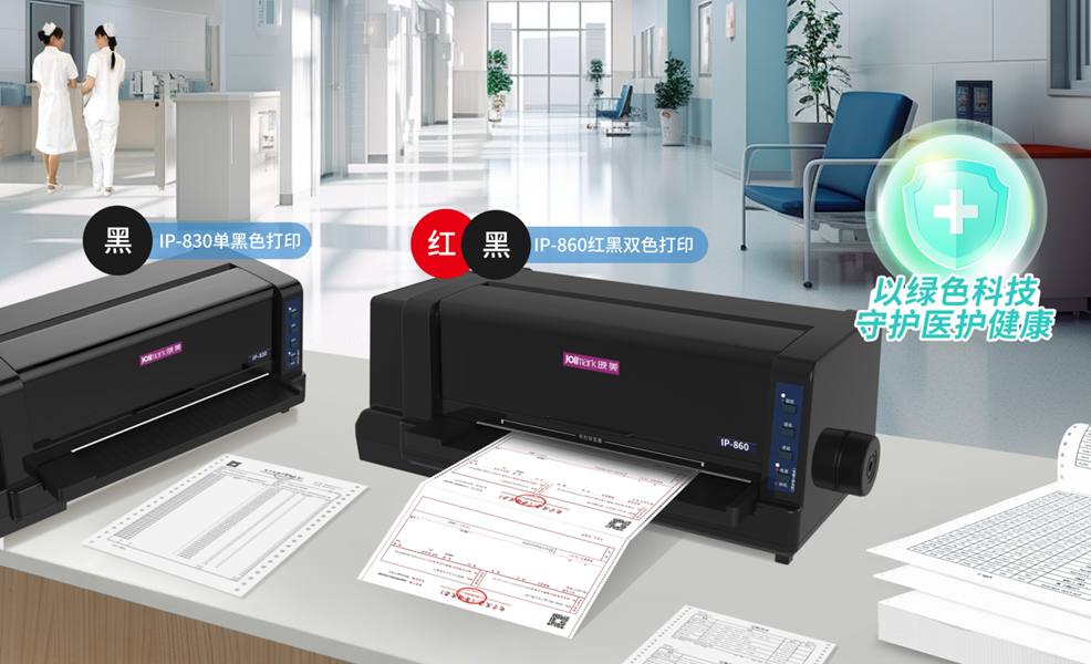 映美连续纸喷墨打印机IP-830/IP-860,其宽幅调节与多介质兼容特性,能全面覆盖医院不同科室的单据类型,为医院高频打印场景提供更省心、更高效的专属解决方案。