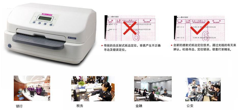 BP-900KII是一款成熟可靠、品质优越的高性能存折打印机。标配中文显示屏,可查看打印机当前状态,还能快速设置菜单参数。同时,其以低故障、低使用成本、高可靠性等,获得到了用户的一致好评,成为国内市场上的经典主流机型之一,并已经在邮储、银行、公安等行业广泛应用。